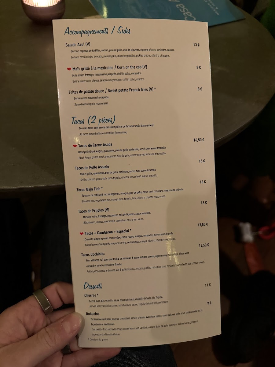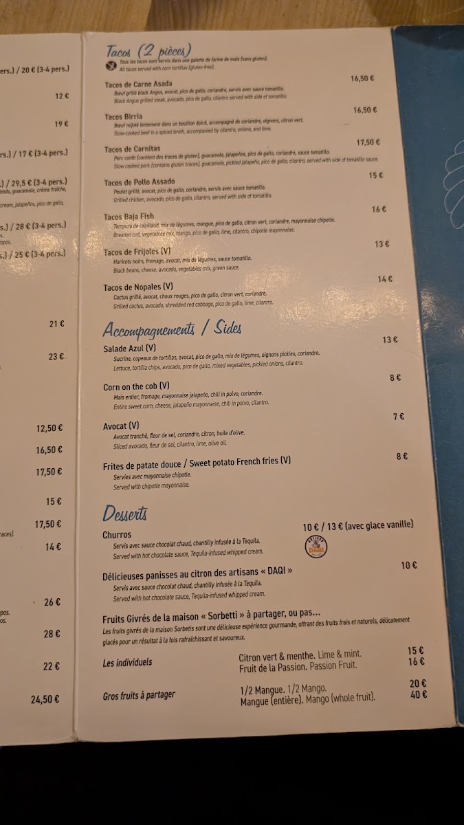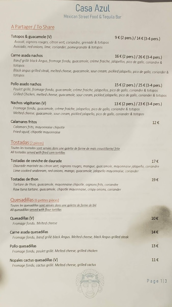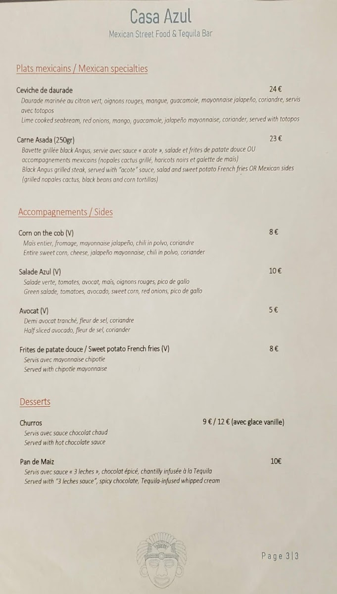 Casa Azul Antibes Menu